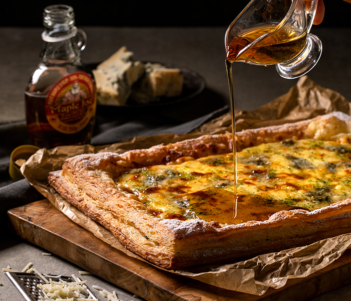 달콤한 메이플 시럽과 고소한 고르곤졸라 치즈가 가득 올라간 피자