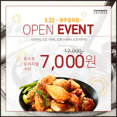 오븐마루치킨 광주일곡점이 3월 22일 오픈입니다.