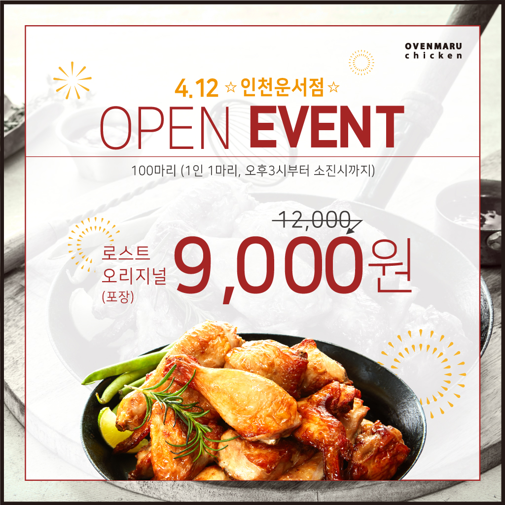 오븐마루치킨 인천운서점이 4/12일 오픈합니다.