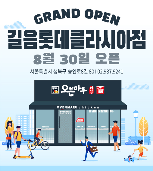 육즙팡팡 오븐마루치킨 길음롯데클라시아점이 8/30일(화) GRAND OPEN!! 합니다