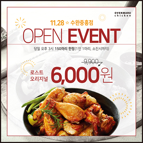 오븐마루치킨 수완중흥점이 11/28일 오픈합니다.
