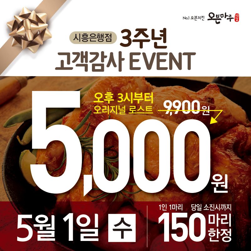 오븐마루 시흥은행점 3주년 고객감사 이벤트!