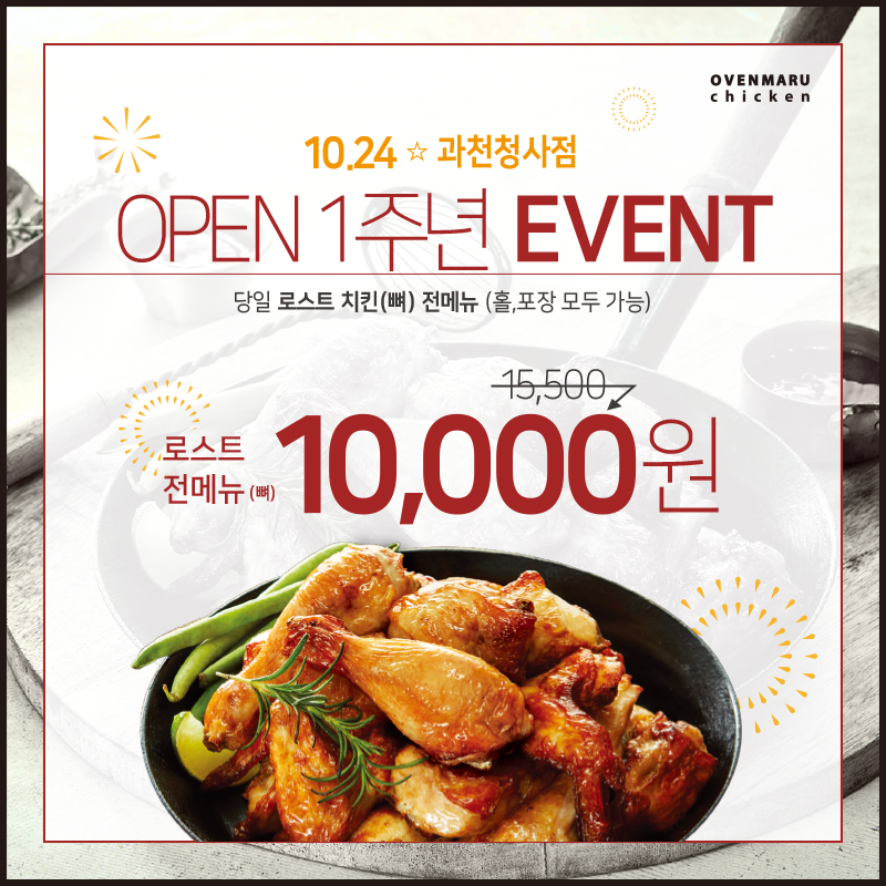 오븐마루치킨 과천청사점이 10/24일 오픈합니다.