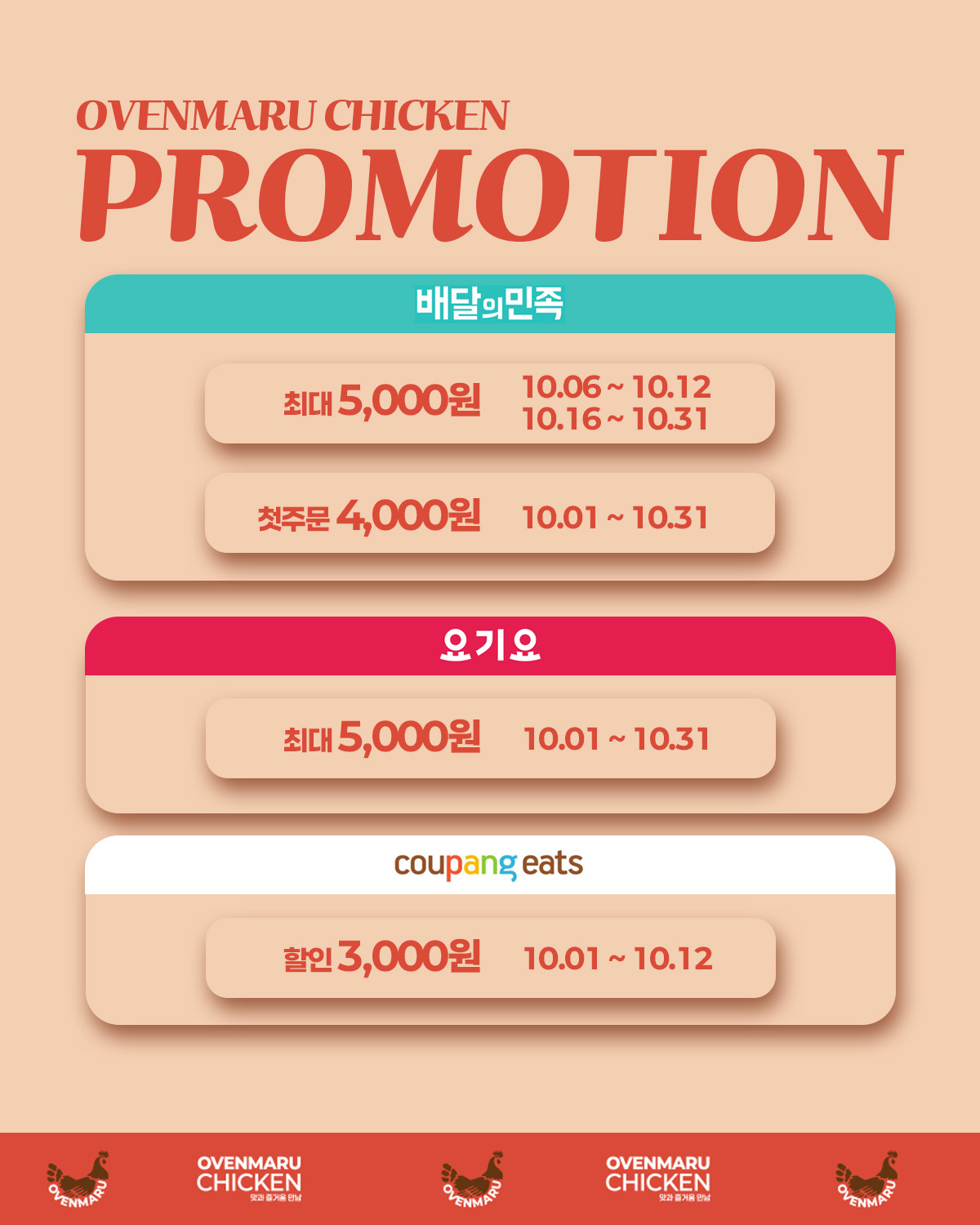 오늘은 오븐마루치킨 10월 배달앱 프로모션에 대해서